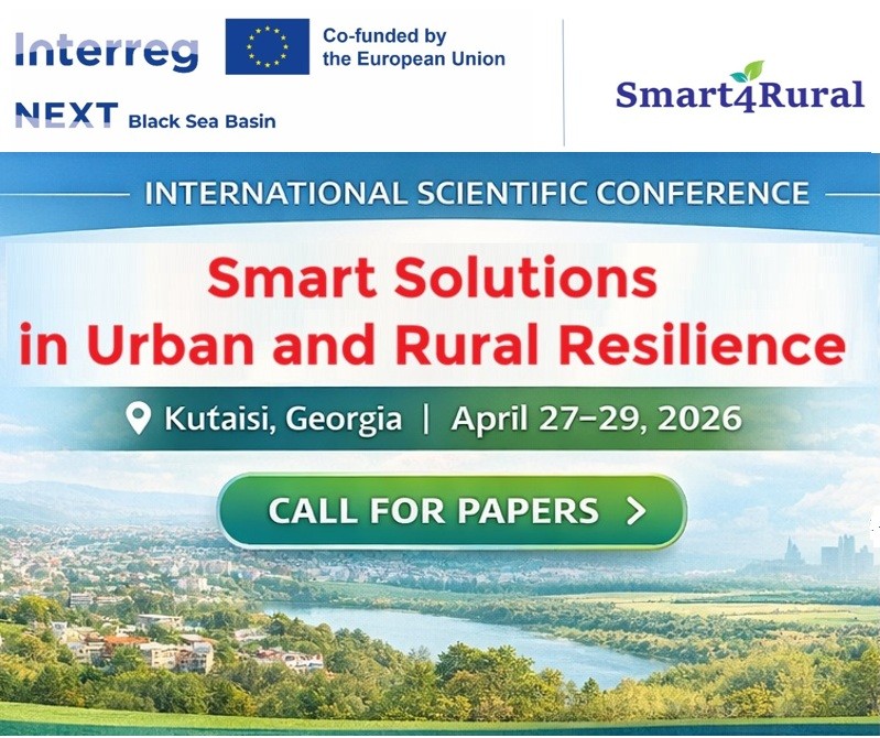 Researchers, academics, and practitioners are invited to submit papers to the International Scientific Conference“Smart Solutions in Urban and Rural Resilience”, which will be held in Kutaisi, Georgia, within the framework of the Smart4Rural Project, implemented under the Interreg NEXT Black Sea Basin Programme.